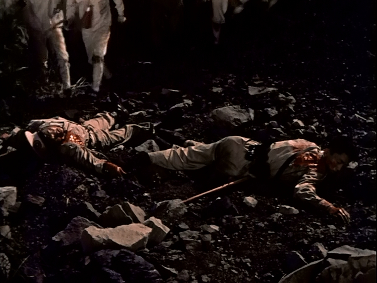 e31The dude who went missing is Shigeru’s (soon-to-be) brother-in-law Goro, a noted hot-head who just about everybody assumes fucking iced the other guy and went into hiding afterward. Shigeru and Kiyo call shenanigans, especially when the autopsy shows the cause of death was getting stabbed in the dome with an almost impossibly sharp blade. The authorities actually start wondering how Goro snuck a katana into the mines.