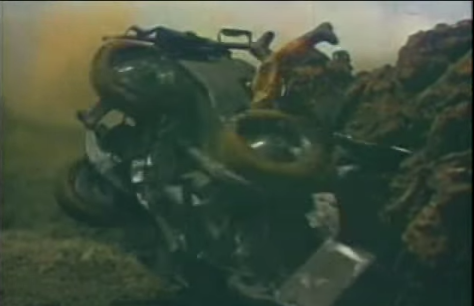Shigeru and pals witness Rodan taking flight from his cave, and it’s… awkward looking. It’s immediately followed by one of  my favorite kaiju effects sequences though. One dude from their group says “fuck monsters I’m peacing out,” and tries to drive off in a jeep. The Rodester is not having it, and flies right over him, kicking up a gust of wind so powerful that it whips the jeep across the road and into a rock wall. The jeep’s an awesome-looking miniature, complete with another doll-man. The jeep crumpling against stone would have been terrific on its own, but it’s a little shocking to see a surprisingly realistic (and now broken) leg sticking out the side of it.