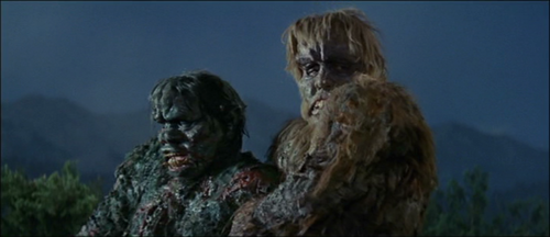 Master monster maestro Akira Ifukube returns to deliver the score. It combines the creepier elements from his work on Frankenstein Conquers the World with his more traditional kaiju movie sound: wild, bombastic brass that gets particularly out of control when one of the Gargantuas starts horkin’ down people like they’re White Castle mini-burgers.