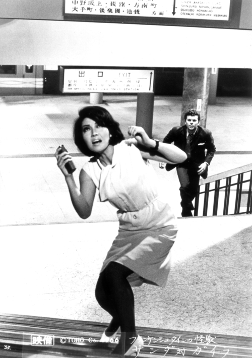 Gaira just throws the big cephalopod around until it decides to fuck off. The Gaira-Octo fight is an exciting way to launch into the story, but it’s also a fun nod to the deleted alternate ending for Frankenstein Conquers the World.